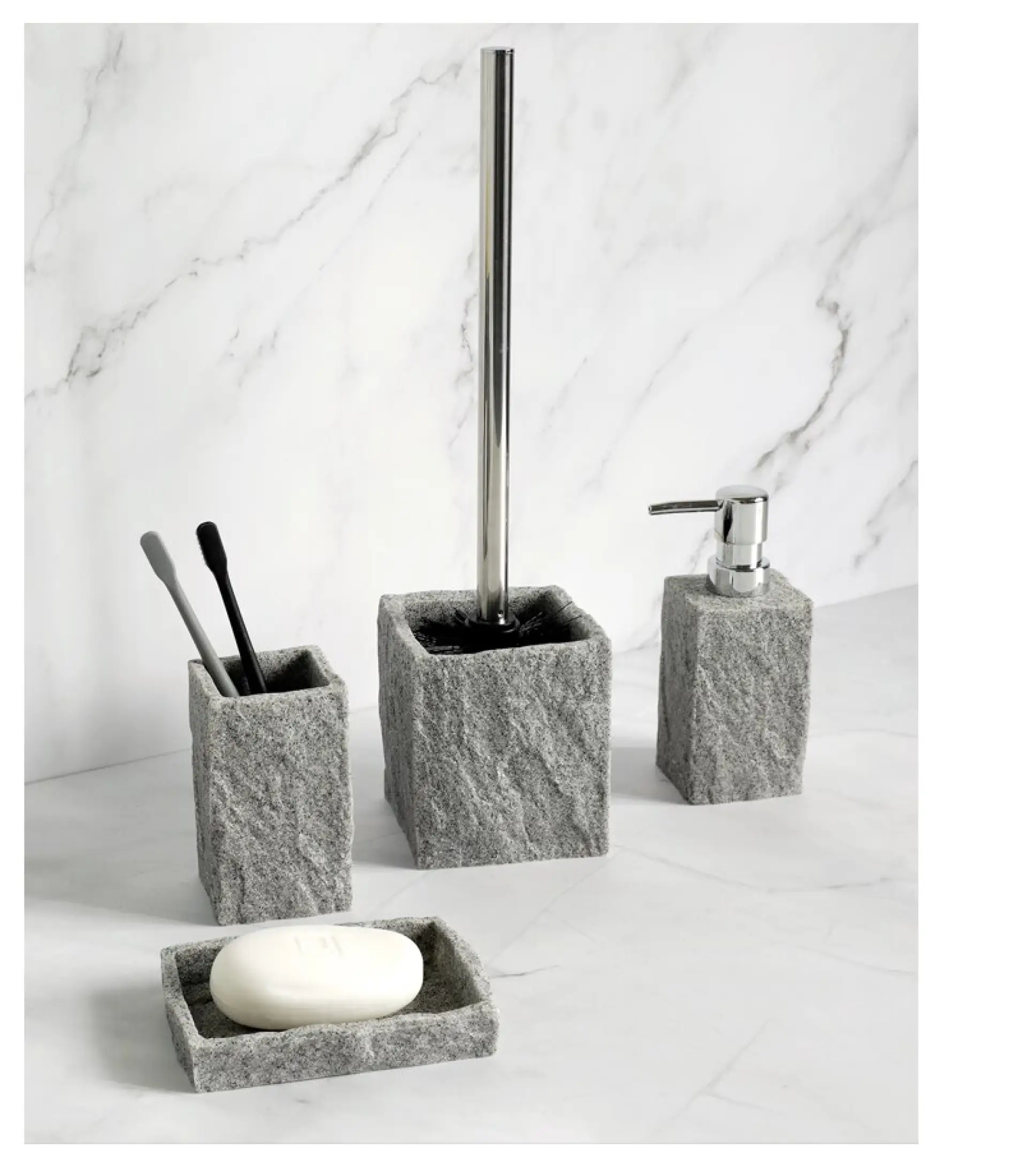 Whether you're looking for towel racks, soap dishes, trash cans, toothbrush holders or one of each, you'll find the pieces you need to keep everything tidy. 4.7 out of 5 stars 70. Get it as soon as mon, jun 21. The marble decorative accessories, trays and toothbrush holders feature unique soft color designs on natural marble stone. Tumbler toothbrush holder soap/lotion dispenser soap dish wastebasket tissue boutique bath jar bath accessory set vanity tray shower curtain hooks towel holder/tray vanity storage bin tank tray vanity mirror cosmetic organizer cup dispenser shower curtain white multi nickel/silver blue grey beige black brown pink clear ivory green bronze gold. Only 1 available and it's in 7 people's carts. 11.5 round concrete valet tray. 3.7 out of 5 stars with 218 ratings. Ceramic toiletries bathroom set marble porcelain cup toothbrush holder / soap dispenser / tray bathroom decoration accessories alsrdesigns 4.5 out of 5 stars (15) $ 74. The soap dispenser is made of quality metal, durable, stand wear and tear, in order to be used for a long time. Medium black shiny oval soap dish no markings great condition. 4.5 out of 5 stars. The items are smooth which should help keep them from scratching the surface of the counter.